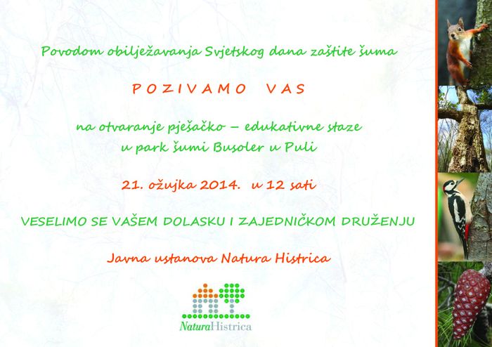 NAJAVA OTVARANJA PJEŠAČKO – EDUKATIVNE STAZE U PARK ŠUMI BUSOLER U PULI