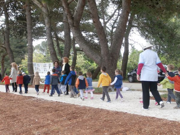 Osmaši fažanske škole s profesorom tehničkog odgoja Ilijom Babićem i u suradnji sa Zajednicom tehničke kulture iz Pule, izradili su drvene kućice za ptice i skloništa za šišmiše, koje su potom i postavili na stabla duž nove šetnice. Djeca iz vrtića More i Sunce, predstavila su svoje projekte o pčelama, pticama i šišmišima. Klupe je od dvaju debla crnike, donirane od strane NP Brijuni, a po ideji Tihane Rudan, izradio Saša Matijašić.