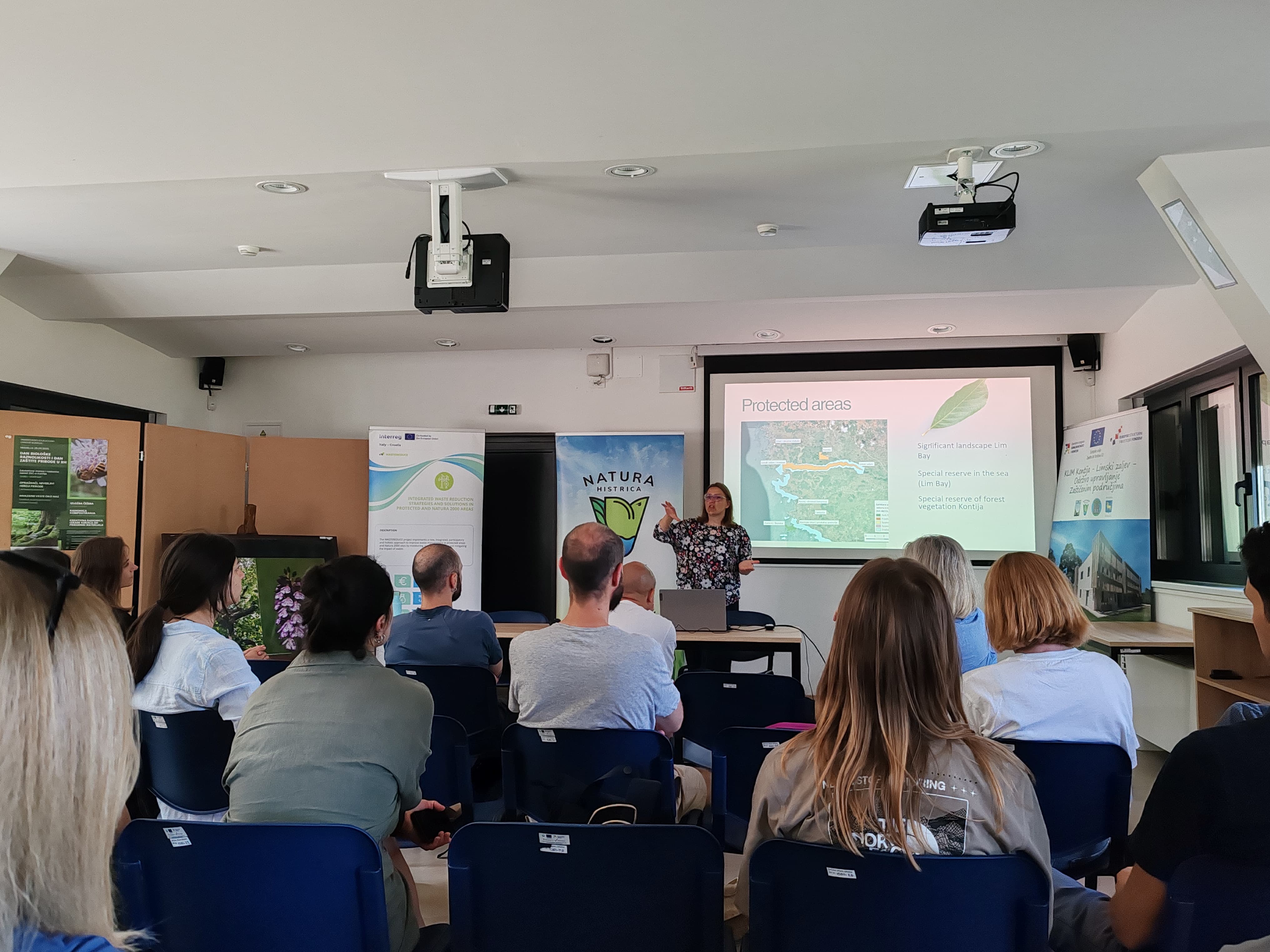 Tako smo u srijedu, 11. lipnja, posjetili Limski zaljev i Znanstveno-edukativni centar (ZEC) Kontija, gdje su partneri imali priliku upoznati se s radom Centra i načinom upravljanja Posebnim rezervatom šumske vegetacije Kontija. Potom smo se uputili u sam Limski zaljev, gdje smo tijekom vođene ture brodom doznali niz zanimljivosti o ovom jedinstvenom Posebnom rezervatu u moru, koji je ujedno i dio mreže Natura 2000.