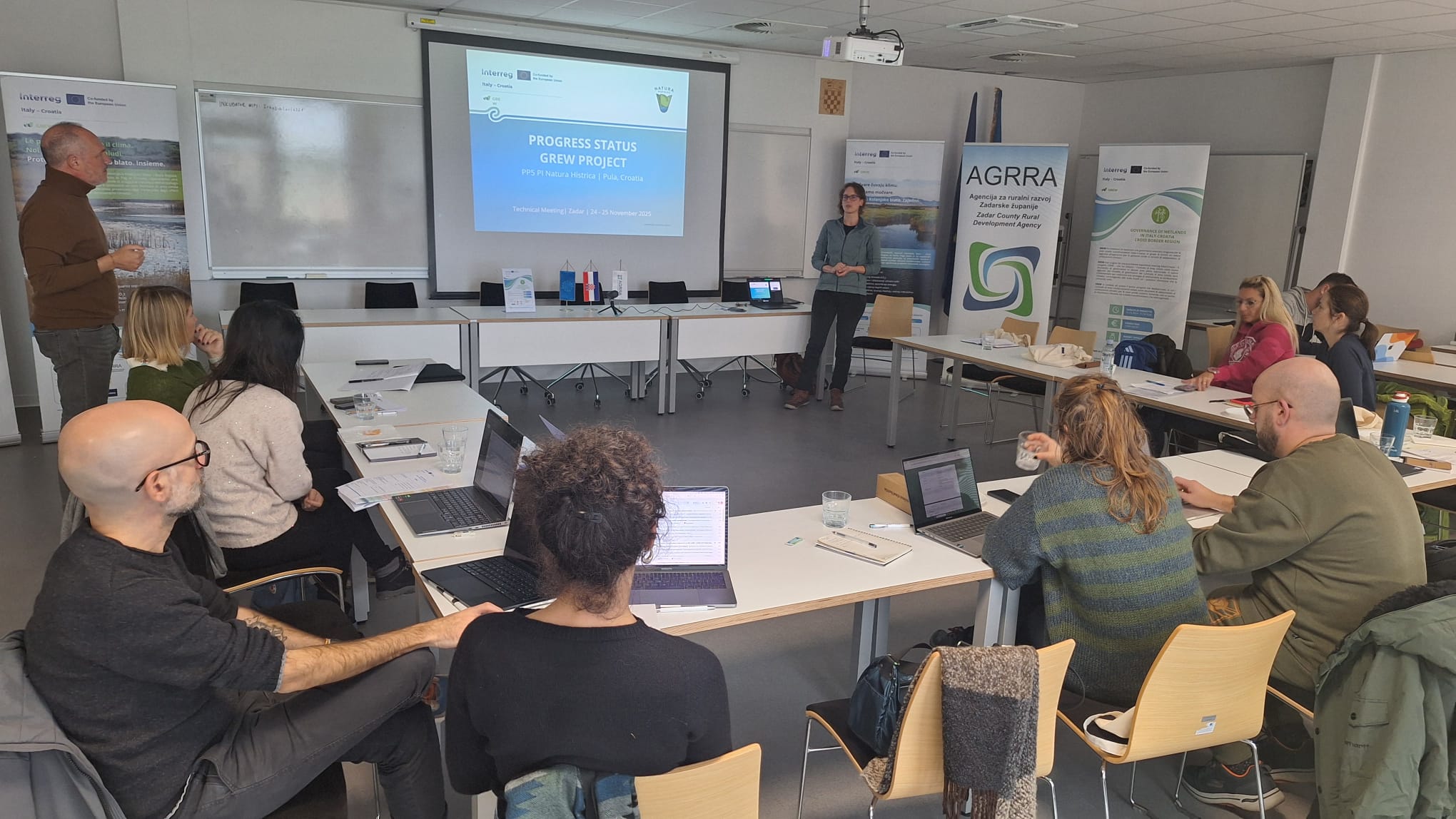 JU Natura Histrica sudjelovala je na dvodnevnom partnerskom sastanku održanom 24. i 25. studenoga 2025. godine u sklopu projekta GREW – Governance of Wetlands in Italy–Croatia Cross-Border Region, koji se provodi kroz program prekogranične suradnje Interreg Italija–Hrvatska. Projekt ima za cilj razviti integrirani i uključivi model upravljanja obalnim vlažnim staništima u Hrvatskoj i Italiji te povećati njihovu otpornost na klimatske promjene.